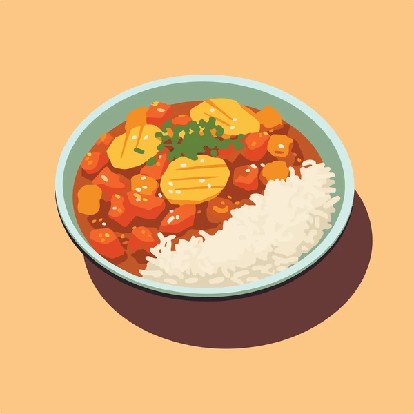 A delicious and comforting Japanese dish with a unique blend of spices. Curry rice, or kare rice (pronounced karē raisu), is a dish that was brought to Japan during the Meiji era (1868–1912) from the British, when India was under colonial rule. It was served to the Japanese Imperial Navy to prevent thiamine (vitamin B-1) deficiency and became popular across Japan in the 1960s when curry made its appearance in restaurants and supermarkets.